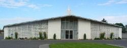 At the traffic light, turn east. drive six blocks on Main Street. Follow the road as it turns north at the river. When you come out of the turn, you will be at the mortuary.